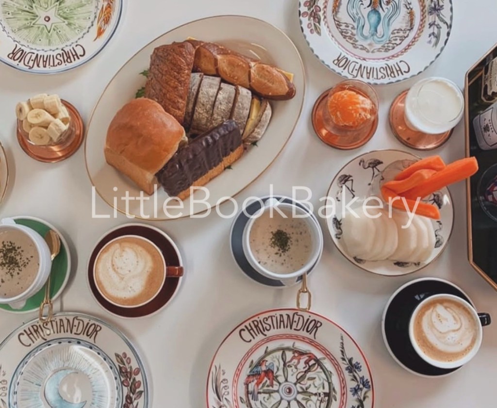 Bread, coffee and fresh sides, a simple homemade brunch at home.